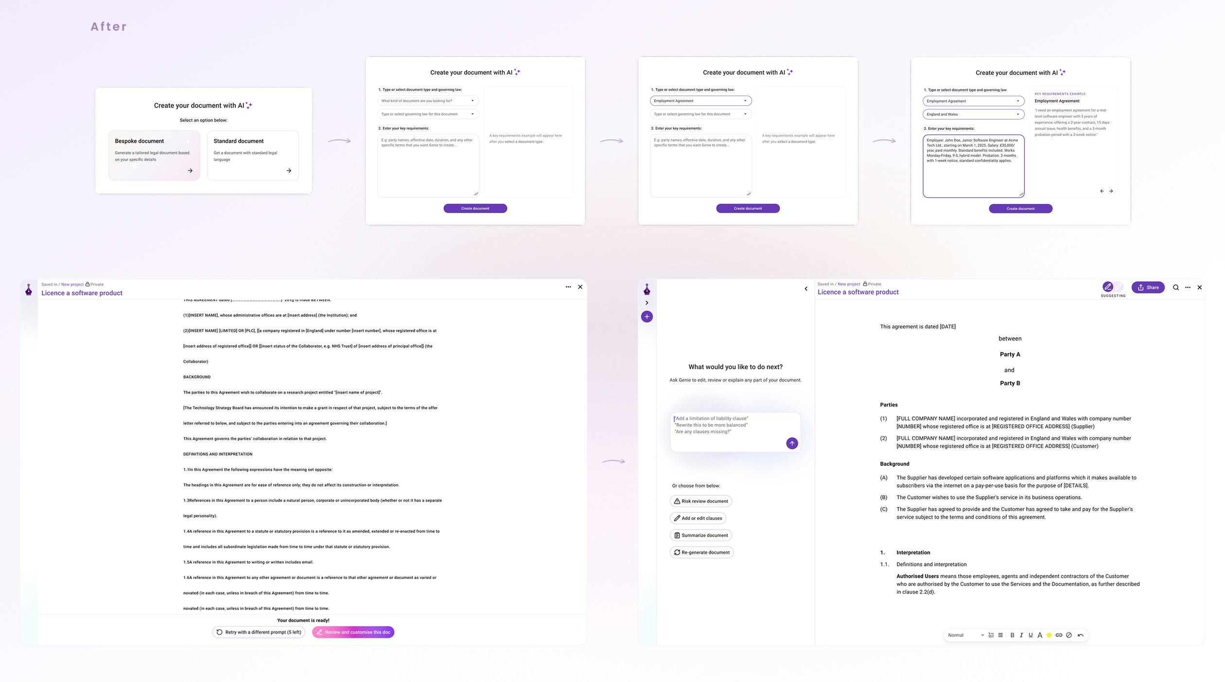 • User 3 (Construction CEO): Wanted simple NDAs but didn’t know if Genie could generate valid ones, so often re-did work outside the tool