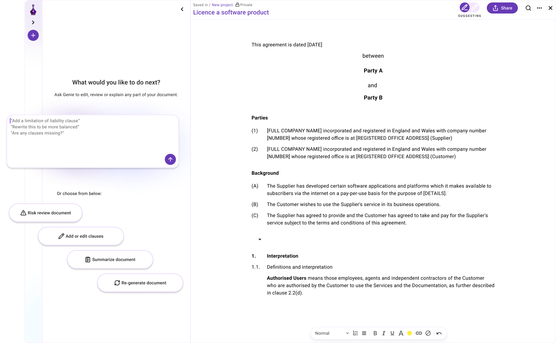 Create From Scratch was originally one of Genie AI’s most powerful but under-optimised features. It allowed users to type a prompt or start a document from a blank page — but in practice, it was confusing and slow for non-legal users.
